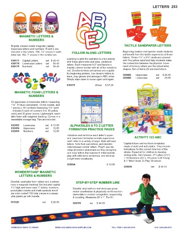 letter set. 162, 1” pieces in the number set. will benefit from the tactile experience of these