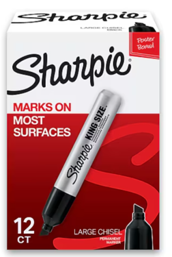 The Sharpie King-Size Permanent Marker is rugged for long-lasting durability. Specially made for industrial users, the bold black thick markers write on greasy, wet, and oily surfaces, while the sturdy plastic barrel withstands heavy use. These permanent markers are built tough with an extra-large ink supply and versatile chisel tip.