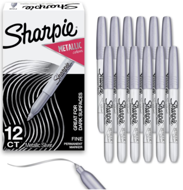 Sharpie Metallic Fine Point Permanent Markers, Fine Bullet Tip, Metallic Silver, Dozen - Permanent ink is fast-drying, quick-flowing and water-resistant. Metallic Sharpie marker features a tough, resilient 0.5mm tip. Durable fine point does not fray. Certified AP nontoxic ink is ideal for marking on dark-colored materials.