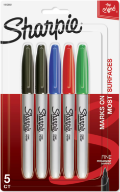 SHARPIE MARKER FINE 5/SET 2-BLACK 1-RED 1-BLUE 1-GREEN |