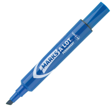 Avery Marks-A-Lot desk-style chisel-point blue dry-erase markers. Mark up and cleanly erase with these Avery Marks-A-Lot dry-erase markers. The pens work great on whiteboards, glass and other nonporous surfaces and are certified nontoxic and low-odor, making them ideal for use in office and classroom settings. These Avery Marks-A-Lot dry-erase markers have a chisel -tip for dense and fine writing and come in four colors, letting you make dynamic presentations. Dry-erase markers for writing and drawing. High-contrast ink in rich blue color stands out on all types of materials. Creates broad and fine lines. As these markers are non-toxic, they are extremely safe to use.
