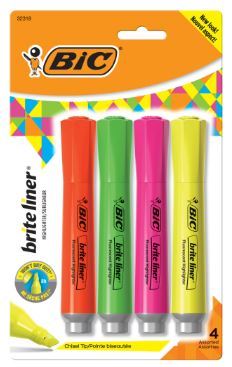 BIC BRITE LINER GRIP HIGHLIGHTER - 4 COLOR SET |