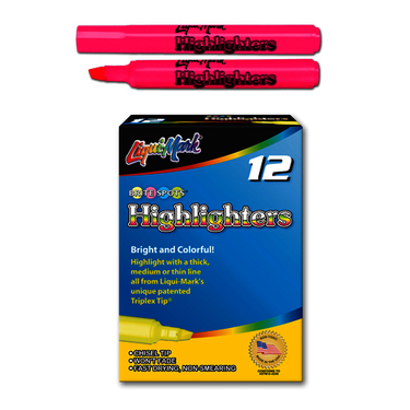 Take notice! Bright and colorful LIQUI-MARK fluorescent highlighters are great for emphasizing or color coding sections of printed material! Highlight with a thick, medium, or thin line all from it's unique patented Triplex Tip. Non-toxic. Sold as dozens.