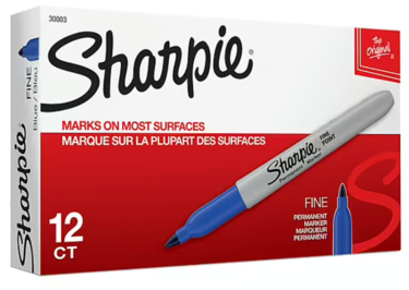 Permanent ink marks on paper, plastic, metal, and most other surfaces.