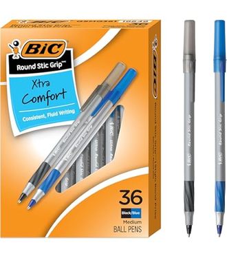 BIC ROUND STIC MEDIUM BLACK PEN - 12 COU...