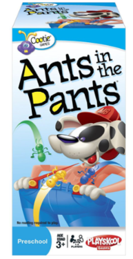 - Includes front pants piece, pant legs piece, back pants piece, 2 suspenders, cardboard insert, 4 blue ants, 4 orange ants, 4 green ants, 4 yellow ants, and instructions