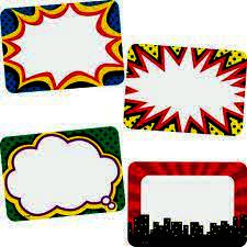 These labels in a fun comic-book art style have an extra large writing area. Ideal for use as name tags and gift tags, they also make great labels for cubbies, folders, bins, and more.