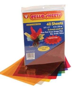 CELLOPHANE SHEETS 8 1/2 X 11 - 48 PACK - 6 SHEETS OF 8 COLORS |