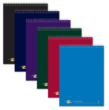 Top spiral, perforated, 8.5x11.5, 80 college ruled sheets, paperboard cover, stiff back