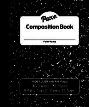 Our deluxe composition book. Stiff board covers with marble imprint, securely sewn with cloth back strip. Finest substance 16 white ink paper ruled 3/8". Size 7 5/8" x 9 3/4". Has margin.