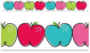 Dress up bulletin boards rooms hallways and common areas with the bright colors and whimsical designs in this Doodle Apples Border This versatile border is perfect for a variety of bulletin boards and classroom decoration themes