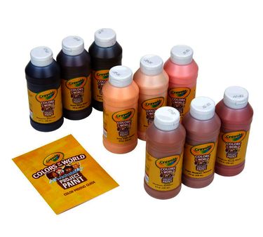Express your creativity with this Crayola Colors of the World Washable Kids Paint Set in 9 resealable 8-ounce bottles. This worry-free Project Paint provides hours of fun and cleans up easily. Children can choose from a range of nine skin-tone paints created to mirror authentic skin colors. Designed to inspire, this pack of Crayola Multicultural Kids Paint is perfect for activities on diversity and self-awareness. Each washable color is specially formulated to wash cleanly from skin and most washable clothing. This paint set for kids is great to have on hand for school projects, crafts, and creative play. Pair with Crayola Colors of the World Crayons for even more creative, customized fun. Safe and non-toxic, ideal for children ages 3 & up.