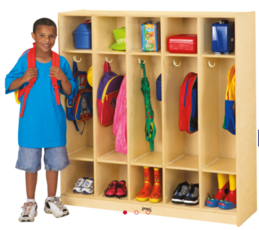Lockers wwith double coat hooks, side mounted. Hardboard backing with safe edges.