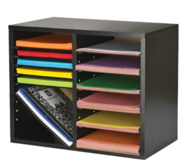 Heavy-duty wood that can support large amounts of paper. Adjustable 11.8" depth shelving