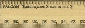12" wood ruler with pencil groove and single metal edge. Scaled in 1/16" on one side, millimeters on the other.