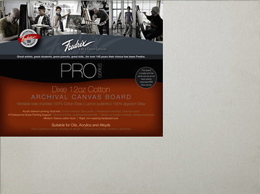 Fine artists’ canvas on heavy cardboard. All edges are carefully turned over.