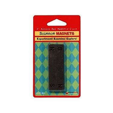 Sometimes simpler is better! Economical magnets in a basic bar shape feature an opposite pole on each end, creating an interesting arc-shaped magnetic field to explore. Ideal for activities that do not require a lot of lifting power. Learn all about magnetic polarity! A great demonstration and experimentation magnet! Each pack includes 2 alnico bar magnets with North and South poles stamped. Each magnet measures 3"L x .50"W x .25"T. For ages 5+.