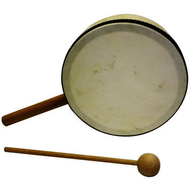 A drum with a handle makes is a great first drum. Features a wood laminate frame covered with a durable calfskin head and wood handle. Play by gently hitting head with a mallet.