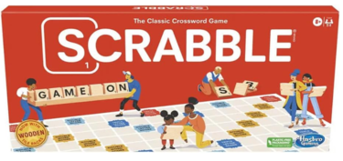 - Classic Scrabble game has the letter tiles and game guide for a wordy showdown
