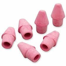 Wedge shaped eraser caps replace worn out pencil erasers. Fits standard size pencils. Latex free.
