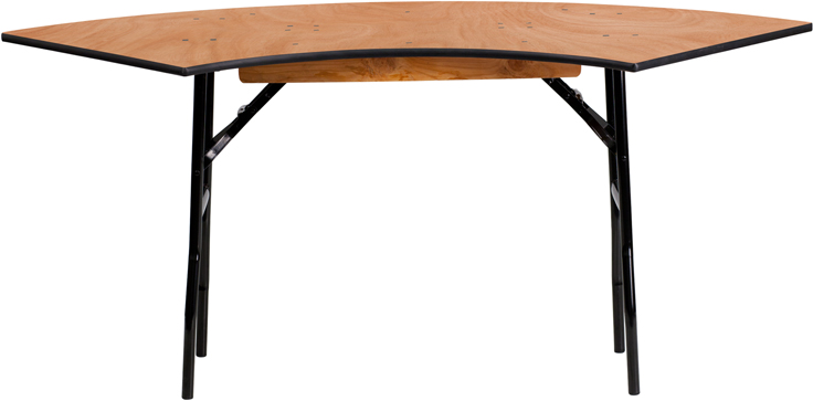 This semi-circular wood folding table allows you to create a serpentine, half circle or full circle table. The serpentine table allows you to create beautiful arrangements for weddings, banquets and other events. Create a serpentine table by placing two tables in alternate directions. Create a half circle or full circle by placing two or four tables together from end-to-end. The table legs fold under the table to make storage more convenient and for better portability. This table is commercial grade to withstand everyday use in the hospitality industry. [YT-WSFT48-24-SP-GG]