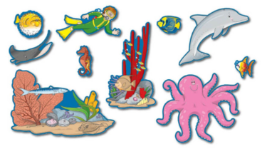 • 26 colorful accents, largest measures 23" x 16"
