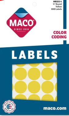 Round Color-Coding Labels are ideal for organizing files, projects, storage cartons, merchandise, and more. Simple to apply, these colorful labels feature removable adhesive that holds firmly yet peels off easily. These round labels are 3/4 inch in diameter and are proudly made in the USA. 1015 labels per box (35 labels per sheet, 29 sheets per package).