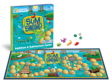 Classic game play has a brand-new look! Math becomes an adventure with this award-winning addition and subtraction game that takes kids on a journey through Sum Swamp. They'll make their way over the crocodile shortcut and through the swamp to the finish by adding and subtracting the numbers on the dice.