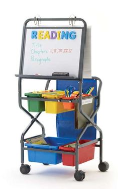 TEACHER TROLLEY W CHART HOOKS MAGNETIC DRY ERASE BOARD,TUBS,BINS STORAGE |