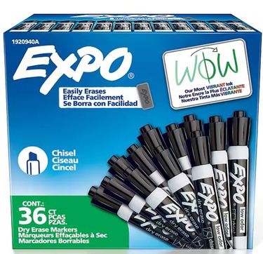 Expo Chisel Tip Expo Low Odor Dry Erase Markers, Black - Pack of 36