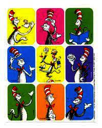 STICKERS GIANT CAT IN THE HAT 36 STICKERS 1 5/16 X 1 3/4 9 DESIGNS |
