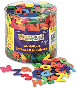 Bright, colorful WonderFoam® letters and numbers in a 1/2 pound clear plastic storage tub. Pieces are thick enough for small hands to grab easily. A great learning tool! Approximately 1,500 pieces. Sold by weight, piece count may vary.