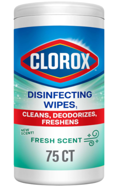 Clorox Disinfecting Wipes clean, disinfect, deodorize and remove allergens for 5x cleaning power* and leave a fresh scent. Disinfecting Wipes clean and disinfect with antibacterial power that kills 99.9% of viruses and bacteria that can live on surfaces, including COVID-19* Virus, staph, E. coli, MRSA, salmonella, strep and Kleb. These all-purpose disposable wipes remove common allergens, germs and messes on surfaces like kitchen counters, bathroom surfaces and more and can prevent the growth of bacteria* for up to 24 hours. Wipes are safe to use on finished wood, sealed granite and stainless steel. Clean with bleach-free wipes to keep dirt and germs away. *5x cleaning power: cleans, disinfects, deodorizes, removes allergens, leaves a scent, removes dirt, removes grime. Kills COVID-19 virus: kills SARS-CoV-2 on hard, nonporous surfaces. Use as directed. Prevents the growth of bacteria: odor causing bacteria on non-food contact surfaces. Allow product to air dry