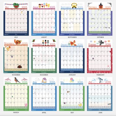 SEASONAL WALL CALENDAR JULY-JUNE 12 X 16.5 |