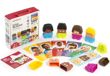 A set of characters with interchangeable pieces which enable children to freely create likeable characters: there are over 100 possible combinations. This game comes with activity cards and is an entertaining tool to help children become familiar with the main emotions. Emotiblocks has won 4 prestigious international awards: 2015 Best Toy Award of the Spanish Association of Toy Manufacturers in the Games category. Dr. Toy's 100 Best: selected among the 100 Best Children's products of 2015. Dr. Toy's 10 Best Games: selected among the 10 Best Children's games of 2015. Parent's Choice Awards 2015: selected among the Best Products of 2015, in the Toys category., Highly enjoyable way to learn basic emotions with our interchangeable Emoticons, Become familiar with the principle emotions with our Emoticons, 100 possible combinations.