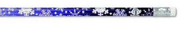 Fun flurries cover this "cool" pencil. Features silver snowflakes on a shimmery, Dark blue background. Standard size pencil with latex-free eraser. Unsharpened. One Dozen