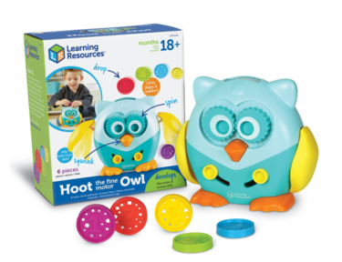 Help little hands build strength, coordination, and scissor skills through five busy activities. Drop the coins, rotate hoot’s eyes, Poke his squeaky nose, or flap his wings with the sliding front buttons.Once the coins are inside, use scissor skills to flap Hoot's wings and send the coins tumbling out his sides.
