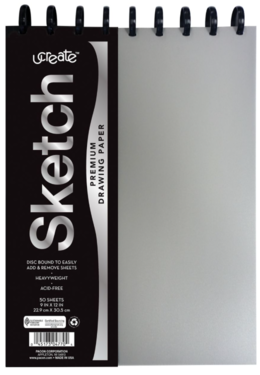 This sketch book is disc bound at the top and can easily be used by both left and right-handed artists. This sketch book has the ability to move, remove and replace pages using the unique disc binding system. The heavyweight paper has a medium tooth and is perfect for all dry media. Acid free. Recyclable.