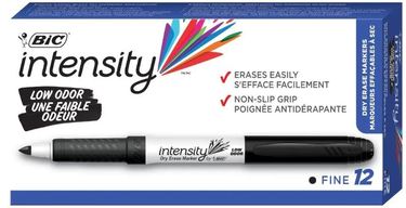 Bring bold, bright color to whiteboards and other non-porous surfaces with these BIC Intensity Low Odor Dry Erase Markers. The fine-point tips are ideal for creating precise lines, and each marker features an ultra-comfy rubber grip, offering comfort and control while you write. With a non-toxic, low-odor formula that is nose-friendly, these smooth-writing dry erase are ideal for use in schools, hospitals, and offices.