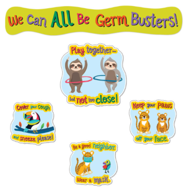 INCLUDES: This 9-piece set includes a “We Can All Be Germ Busters” header (assembled from 2 pieces), and 7 reminder pieces.
