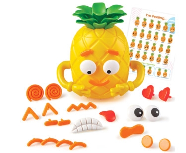 TWO-SIDED pineapple helps kids learn opposites by building two faces at once!