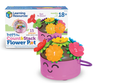 Learning fun is always in bloom with Poppy and her colorful flowers! Whether they're learning in preschool or through homeschooling, toddlers build the whole-hand skills they need every time they play with Poppy the Count & Stack Flower Pot from Learning Resources! This adorable fine motor toy for toddlers comes with 6 numbered two-piece flowers that make it easy for toddlers to build counting and stacking skills, as well as hand strength coordination, and other essentials of preschool fine motor skills. Poppy's flowers also come with a bonus learning surprise—in addition to building fine motor and gross motor skills, this preschool toy also introduces toddlers to early preschool color skills. Poppy's flower pot includes a handy handle for taking the preschool fine motor fun on the go. When playtime is done for the day, Poppy's flowers store inside her pot for easy clean-up! We're Learning Resources®, and we've been helping parents and teachers build generations of amazing kids since 1984. From ABCs and 123s to fine motor and STEM skills, our educational toys offer kids the building blocks they need to succeed in school and develop a lifelong love of learning. Discover countless ways to learn through play with our award-winning products, including Toy of the Year winners Tumble Trax®, Botley® the Coding Robot, and Coding Critters™.