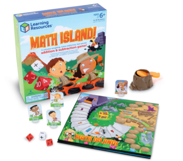 Can you be the first to escape the lava-filled ruins of Math Island? Kids practice counting, addition, and subtraction up to 20 during every fast-paced round of Math Island Addition & Subtraction Game, a fun math game for kids from Learning Resources! Designed for 2-4 players, this adventurous children's math game takes intrepid adventurers around the mayhem-filled confines of Math Island, where they must use their addition and subtraction skills to escape and win! This smart game for kids comes with fun equation dice that serve up a different math problem with every roll—solve it, and you'll reveal how many spaces you move! It's a fun way to promote number learning for kids! Watch out for the island's many hazards, though—you'll need to escape quicksand, avoid temple guards, navigate the crumbling bridge, and more! The action gets even more intense with the erupting volcano, which sends dice flying and players scrambling to safety. This fun, fast-paced math board game makes a great addition to educational indoor games for homes and classrooms! It's even ready for use in your math Montessori curriculum!