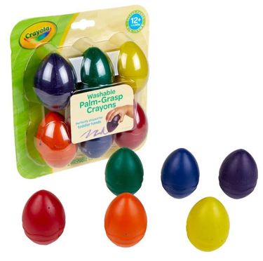 Crayola My First brings you toddler coloring supplies specifically designed to fit the natural grasp of a toddler's tiny hand. This way, toddlers can begin making their first marks without struggling to hold much thinner, regular crayons. These 6 Washable Crayons for toddlers are shaped like eggs and come in various bold colors. The added advantage of their washability ensures teachers can stress less as children explore their creativity.
