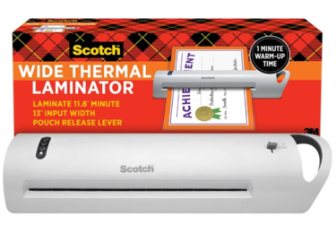 Scotch TL1302X Thermal Laminator helps you create professional, high-quality laminated documents. This thermal laminating machine has two heated rollers with two temperature settings to create bubble- and wrinkle-free results. A time-saving addition to your home office and school supplies, this thermal laminator warms up in one minute and laminates at a rate of 18 in. per minute to save you time. Touch button controls make operating this laminator machine simple. Auto shutoff after one hour helps conserve energy when this laminating machine isn't in use. The Scotch TL1302X laminator machine is compatible with items up to 13 in. wide and with 3 or 5-mil thick laminating pouches for versatile use.