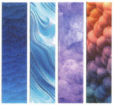Sand Gradient: This set includes 4 Zen Strips with a raised grainy texture in various blue, purple, pink and orange gradient designs.