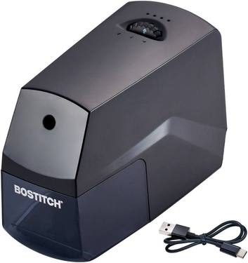 2200 mAh rechargeable lithium-ion battery that's USB-charged and has power indication lights. Customizable tip sharpening, with a larger storage tray for shavings.