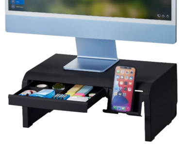 Helps improve viewing angle and eye stress. Ideal for a laptop or monitor, this adjustable monitor riser has four height options and a built-in cord routing channel.
