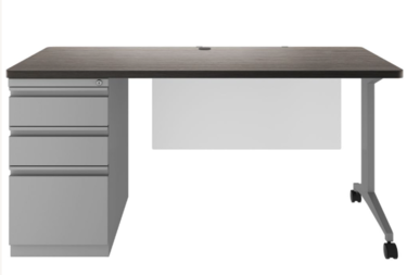T-leg creates a modern design, with locking casters and a pedestal with full-width handles. File drawer accommodates letter-size hanging files, and a box/box/file drawer configuration.