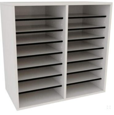 Heavy-duty wood that can support large amounts of paper. Adjustable 11.8" depth shelving